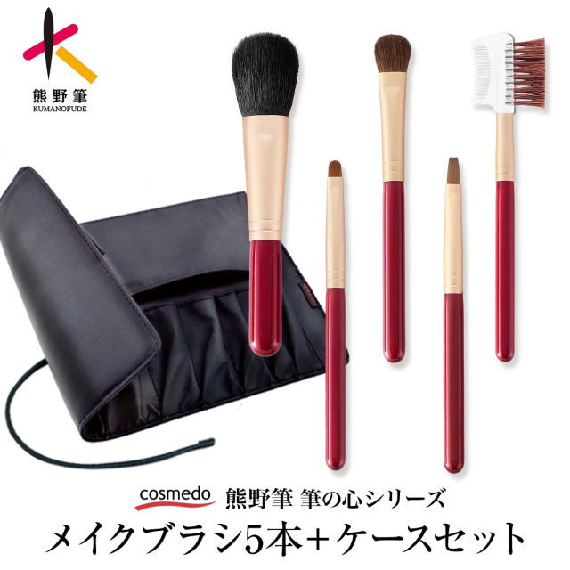 コスメ堂オリジナル【熊野筆 筆の心 FCシリーズ】厳選5本セット。ケースが2色から選べます!熊野筆セット 化粧ブラシ アイシャドーブラシ 丸平 女性 化粧筆 誕生日 プレゼント ギフト