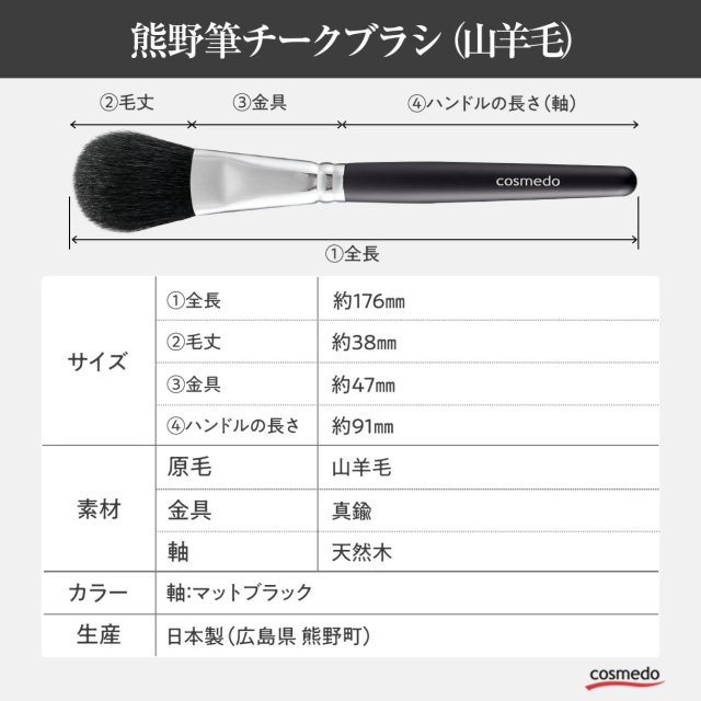 【熊野筆 メイクブラシ】熊野筆チークブラシ (山羊毛100%) 黒軸 レギュラータイプ 日本製